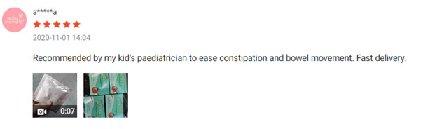 Recommended by my kid’s paediatrician to ease constipation and bowel movement. Fast delivery.